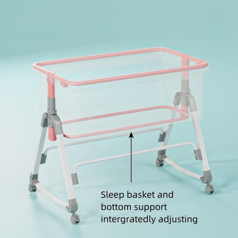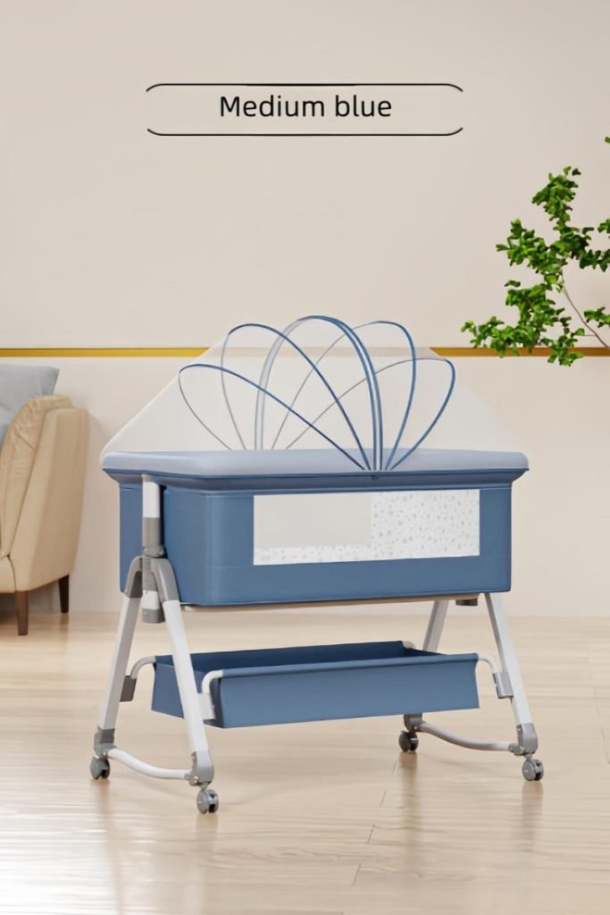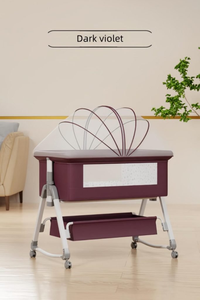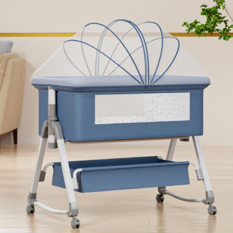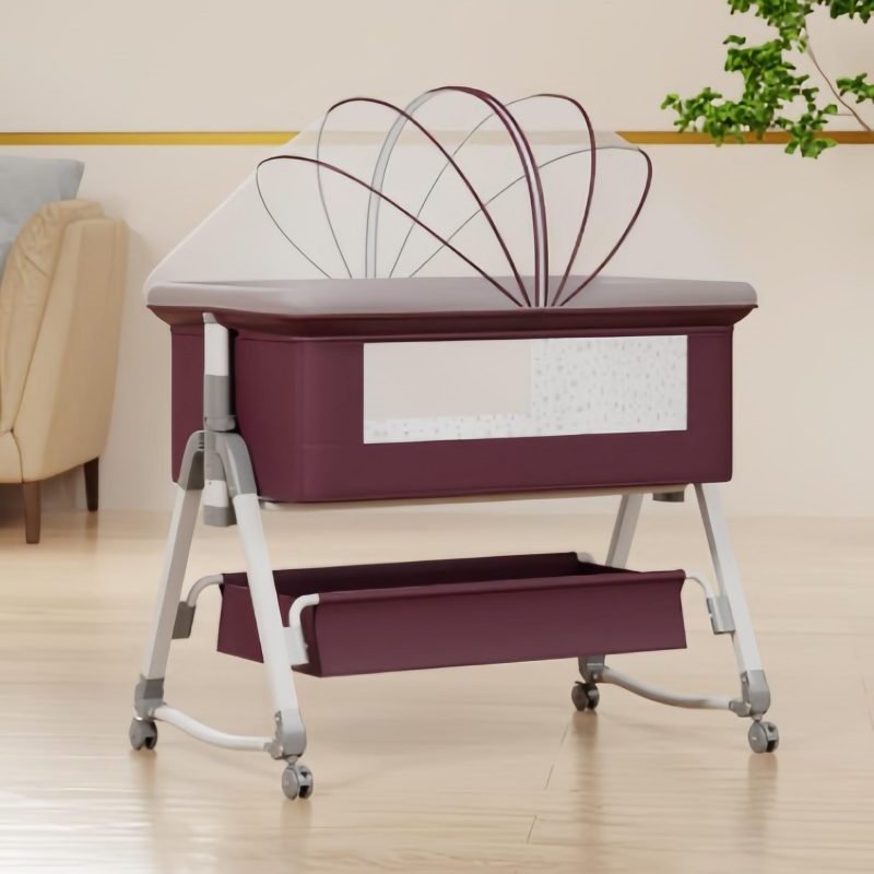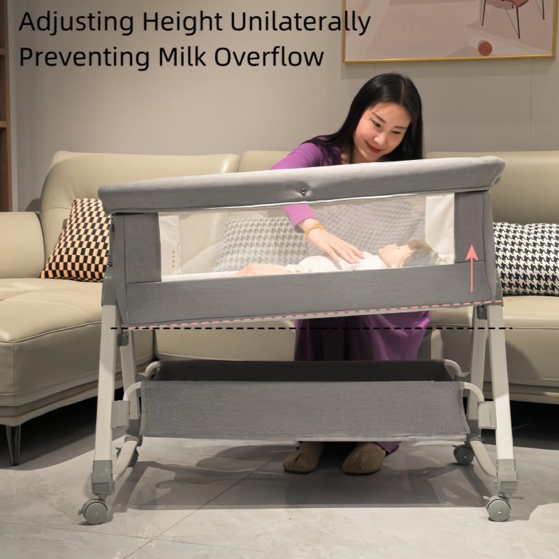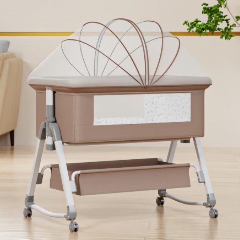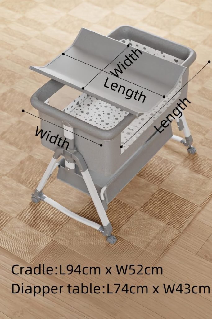 This multifunctional besides crib is mother’s best assistant.Moms can lull babies with the cradle.Infant aiso can be pushed along freely.When babies are sleeping,mothers can splice them onto the big bed