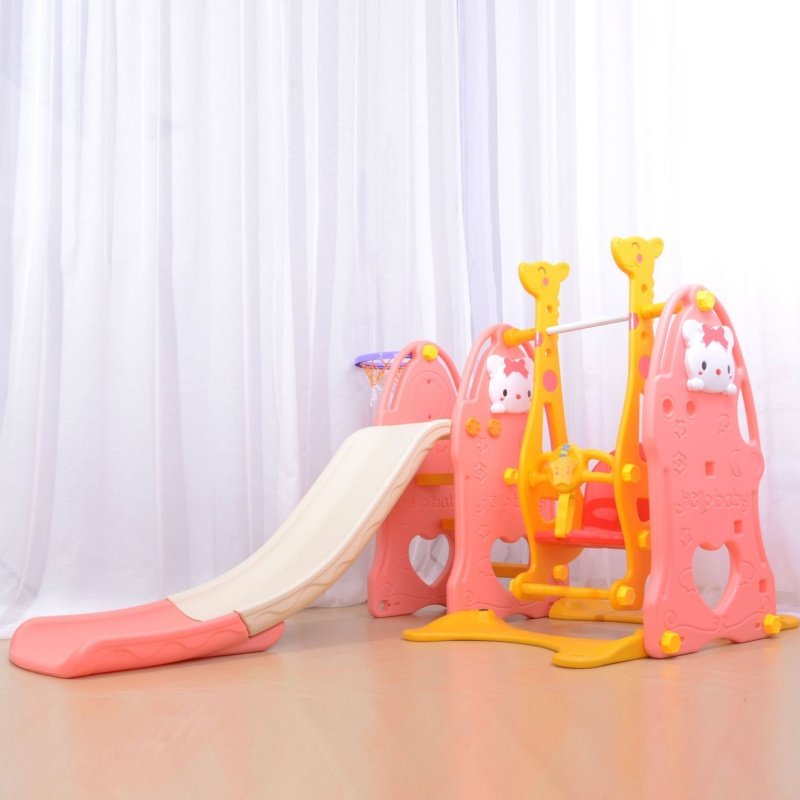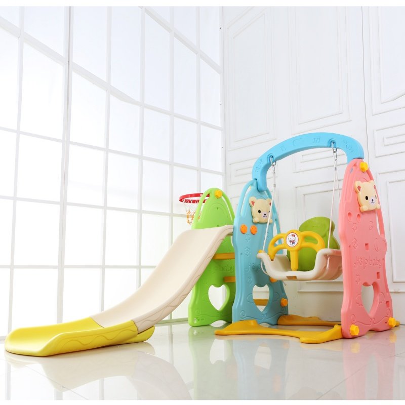 The slide with baby helps develop the vestibular system as kids move swiftly down a slide and come to a stop. It can improve a child’s balance as well.