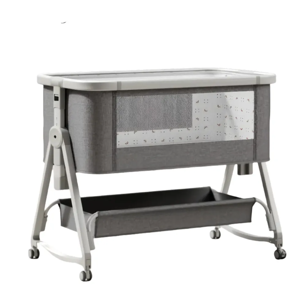 Visual appeal drives market trends effectively. The frame combines sturdy carbon steel with elegant Exposed Aluminum Tubes for a sleek finish. Furthermore, functionality is paramount for daily use. The unit features a built-in Rocker Mode to soothe infants effectively. It also offers precise 6-Position Height Adjustment for perfect alignment with adult beds. Uniquely, the crib is fully Detachable and Foldable for easy storage. To further increase your profit margins significantly, we support a practical Optional Diaper Changer. Thus, you can offer a comprehensive, high-end nursery solution.
